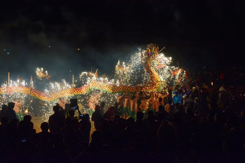 埔寨火龍是我們的春節傳統活動,據說至今三百年歷史了。“火龍”由鐵絲、竹料、紙等扎成,繪上鱗、角、爪,龍首至龍尾長達數十米。在龍身上安裝煙花、炮竹、火箭多達數千枚,龍頭、龍尾裝的火藥更數不勝數。一條火龍由三四十個赤膊青年手擎,加上鼓樂手、龍蝦、金魚等人,整個隊伍達200多人。
