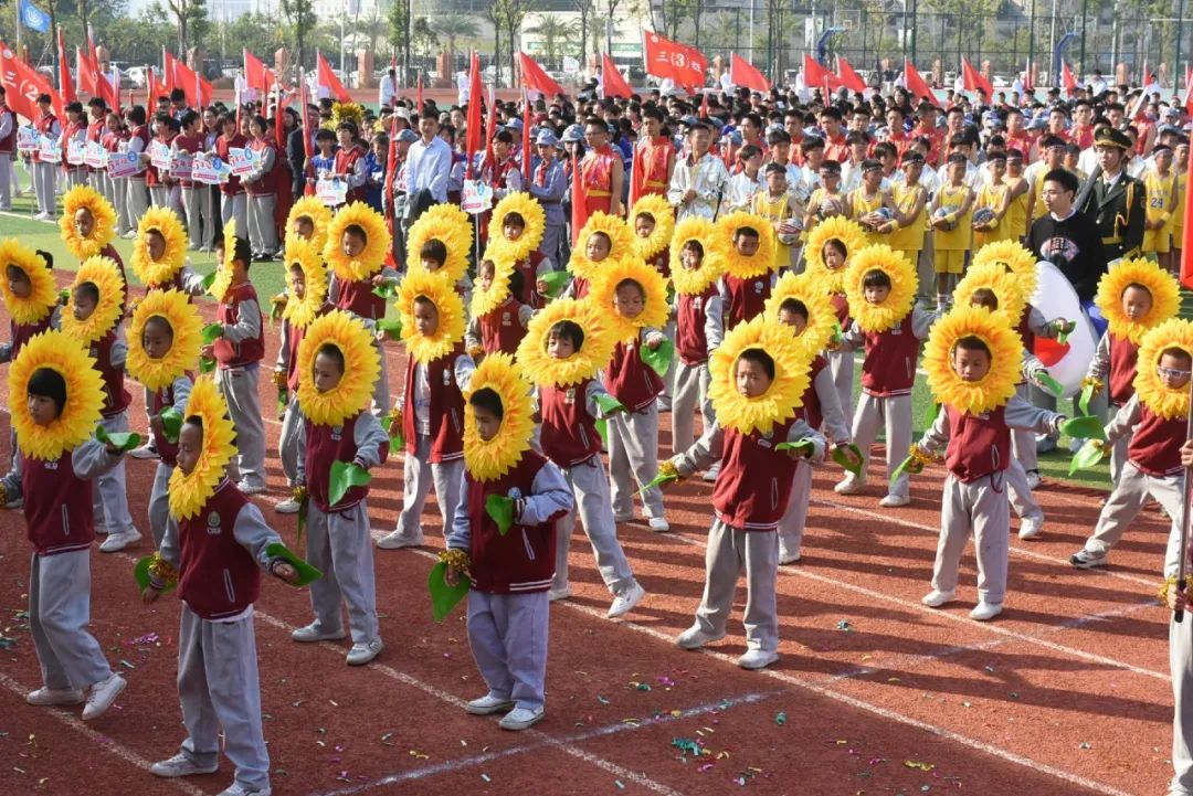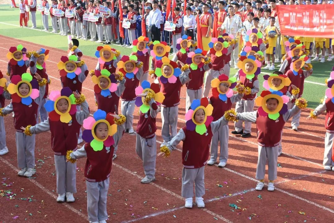 金燦燦的花球如同太陽的光輝灑滿操場,